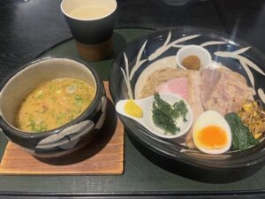鶏白湯スープは、昆布だし・4種の節のだし・玉ねぎだしをブレンドしたトリプルスープ構造が特徴です。濃厚でありながらサラッとした口当たりで、最後まで飲み干せる優しい味わいに仕上がっています。「しお・手火山かつお」バージョンでは、塩味と鰹の香ばしさが加わり、ほのかな胡麻の香りが上品なアクセントに。つけ麺のスープは白湯麺とは対照的に、鶏の旨味をダイレクトに感じられる濃厚な作りになっており、同じ鶏白湯でも異なる楽しみ方ができます。