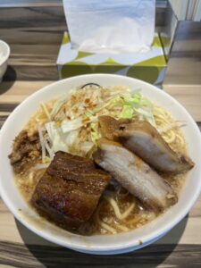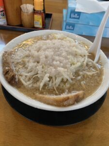 麺の量は通常盛りでも240gと大ボリューム。マシ(2倍)、マシマシ(3倍)、最大5倍マシまで調整可能で、食べ盛りの学生や大食いの方にも大好評です。